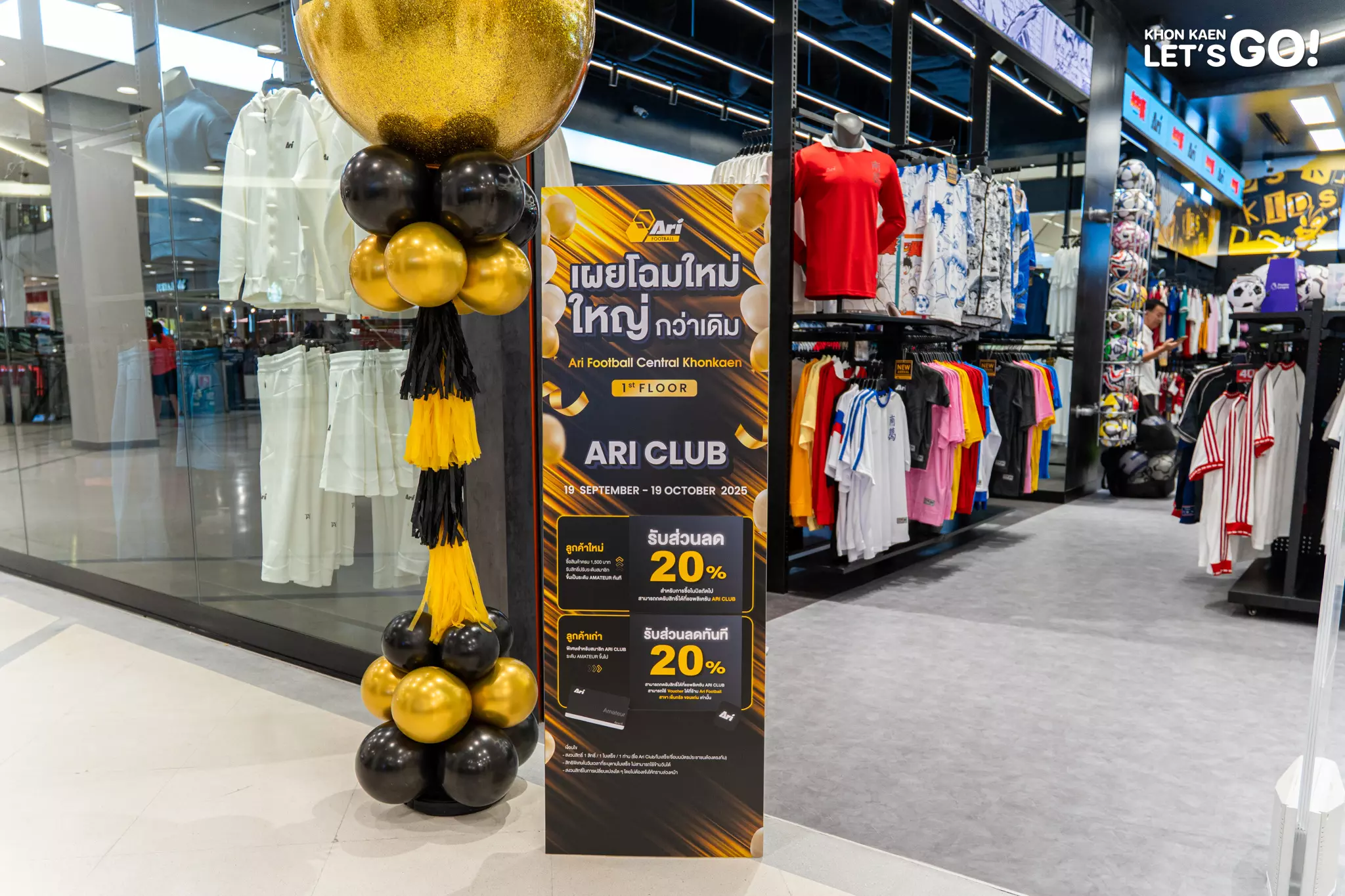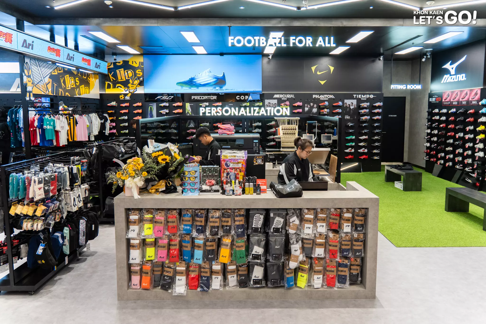 มาแบบจัดใหญ่จัดเต็ม ช็อปเท่สะดุดตา ครบทุกไอเท็มที่แฟนบอลต้องมี ตั้งแต่เสื้อทีมดังระดับโลก รองเท้า Limited Edition จาก ADIDAS, NIKE, MIZUNO, PUMA, ARI GEAR จนถึงบริการ Custom แบบจัดเต็ม และโซน Ari brand ที่ใหญ่ที่สุดในต่างจังหวัด