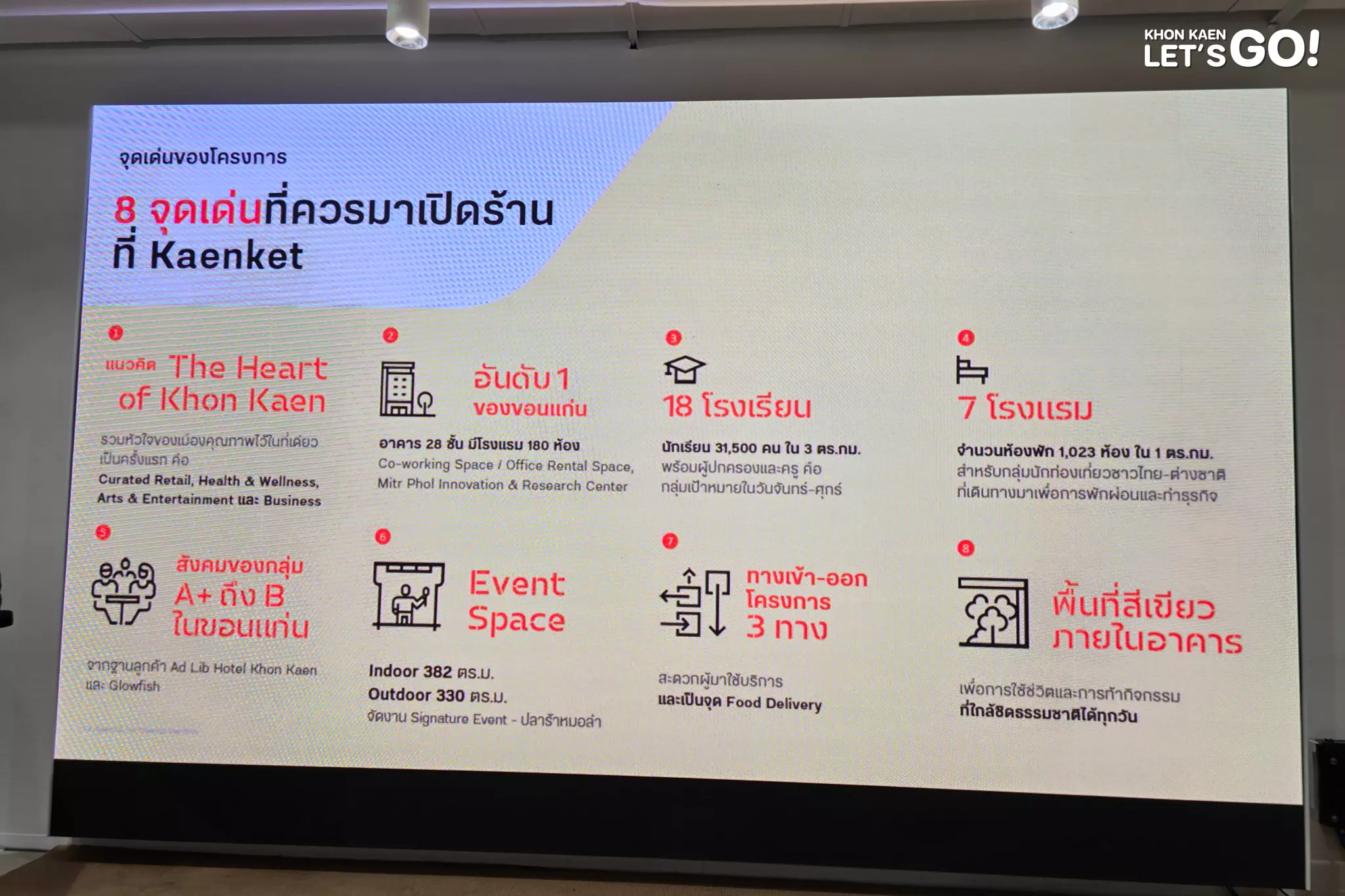 — มี magnet projects ระดับภูมิภาค ได้แก่ Ad Lib Hotel Khon Kaen, Kaenkaew Live House, Glowfish Co-working Space