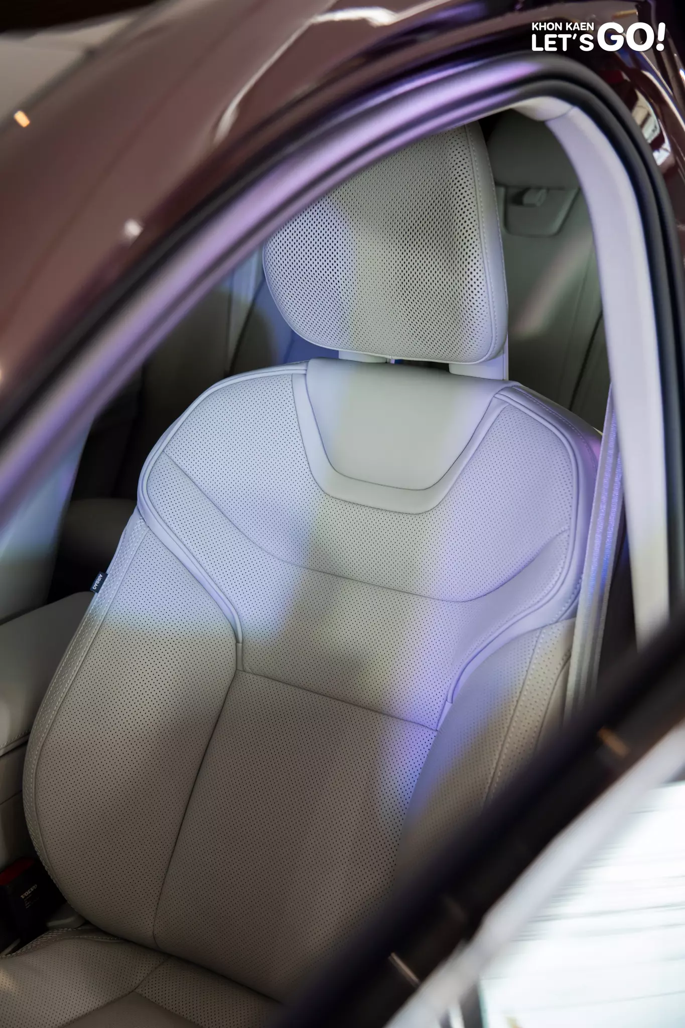 ภายในห้องโดยสารให้ความเงียบและความสบาย ใช้วัสดุไม้จริง FSC-certified เบาะหนัง Nappa พร้อมระบบนวด เบาะหลังเอนได้ 28-33 องศา ระบบฟอกอากาศ และหลังคา Electrochromic ปรับความโปร่งแสงได้