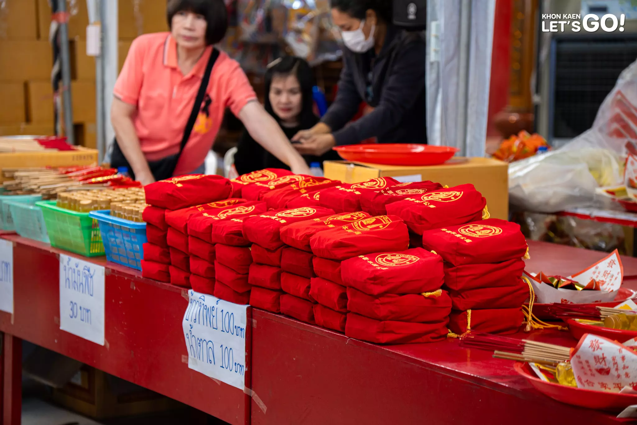 ริมบึงแก่นนครคึกคัก วันนี้เป็นวันแรกของงานเฟสติวัลไทย-จีน-อีสาน ที่ยิ่งใหญ่จัดเต็มกว่าทุกปีที่ผ่านมา บรรยากาศเต็มไปด้วยผู้คนที่มาขอพรเจ้า มารับพลังมงคล