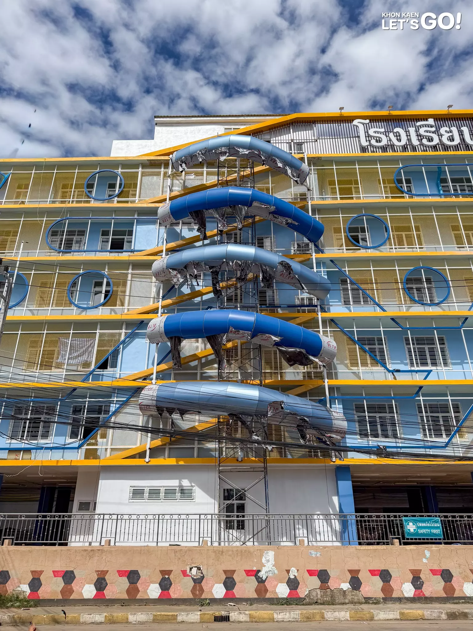 อาคารเรียนใหม่นี้ ได้รับแรงบันดาลใจในการออกแบบจาก “สวนสนุก” ผ่านลวดลายของรางรถไฟเหาะ และใช้โทนสี ฟ้า – เหลือง ตามสีประจำโรงเรียน มีความสูงทั้งหมด 6 ชั้น พื้นที่ใช้สอยรวมอยู่ที่ 4,000 ตร.ม. บริเวณชั้นที่ 1 เป็นใต้ถุนอาคาร ชั้นที่ 2 – 6 เป็นห้องเรียนจำนวนทั้งสิ้น 35 ห้องเรียน มีลิฟต์ และมีทางเดินเชื่อมอาคาร มีการติดตั้งแผงบังแดด พร้อมกับชายคาที่กว้าง เพื่อลดอุณหภูมิภายในอาคาร และนำระบบโซล่าเซลล์เข้ามาใช้เพื่อลดการใช้พลังงานอีกด้วย